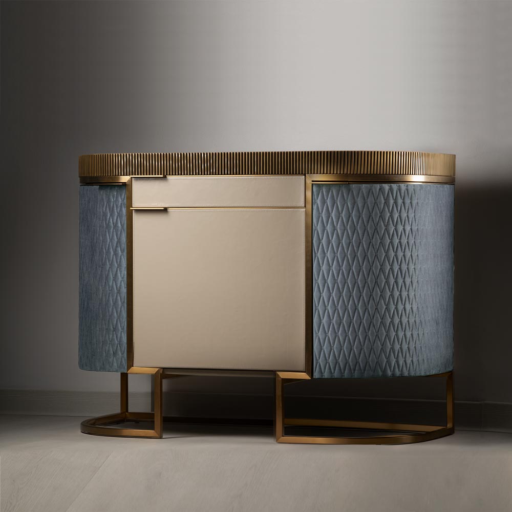 Wood – velvet fabric – natural marble – natural leather – gold steel.